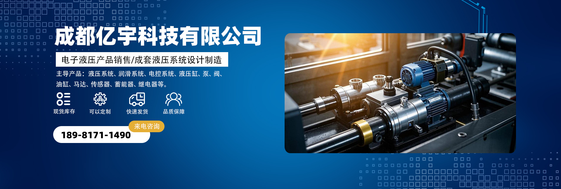 成都億宇科技有限公司是一家專業(yè)從事電子液壓產(chǎn)品銷售及成套液壓系統(tǒng)設計制造的高科技企業(yè)。 主導產(chǎn)品:液壓系統(tǒng)、潤滑系統(tǒng)、電控系統(tǒng)、液壓缸,泵,閥,油缸,馬達,接頭,管件,傳感器,蓄能器,繼電器,密封圈等。同時擁有熟悉國內(nèi)外液壓機電產(chǎn)品的專業(yè)人員為您解決機械液壓方面的問題,并匯集了一批在流體傳動領域內(nèi)具有豐富實踐經(jīng)驗的專業(yè)技術人才,致力于各種高品質(zhì)液壓產(chǎn)品及系統(tǒng)的研制工作。經(jīng)過我們不懈的努力發(fā)展和創(chuàng)新,已與眾多國內(nèi)外供應商建立了良好的合作關系,在價格及供貨周期上均有較